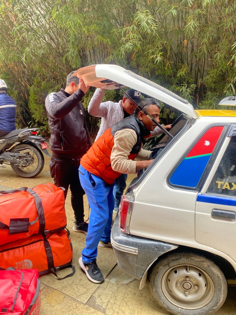 Etter handleturen hadde vi så mye å bære at vi måtte ta taxi hjem. Vi fikk knapt plass i bilen, da vi hadde så mange poser. Det var en ekstremt god følelse og vite at vi hadde klart å få til alt vi hadde kjøpt i Kathmandu, i tillegg til alt hva vi fikk tatt med fra Norge.