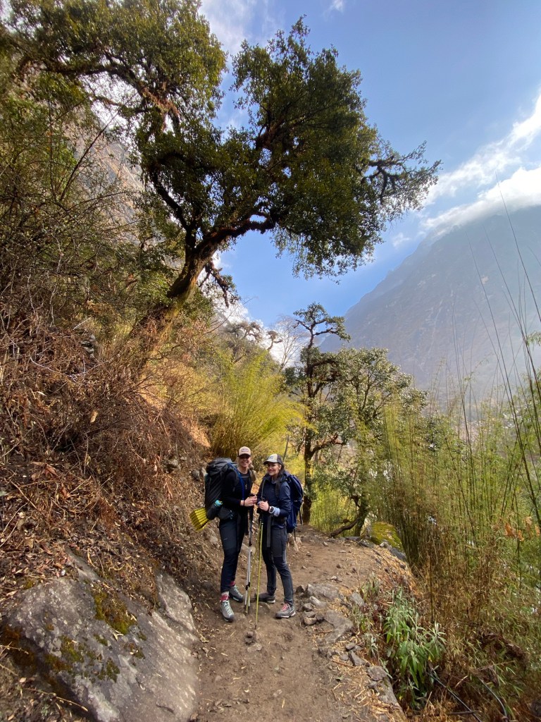 Fra Sayabrubeshi og opp til øverste delen av Langtang brukte vi tre dager. Vi gikk mellom 7-9 timer hver dag, noe som er en ekstrem påkjenning siden vi krysset nesten 1.000 høydemeter pr. dag. Anne har gått mye i fjellet, så for henne gikk det lett som en plett. For Cathrine ble dette en større utfordring både for kroppen, men spesielt pusten. Men, vi tok det «pistari, pistari» (norsk: sakte, sakte) og tok et steg av gangen.