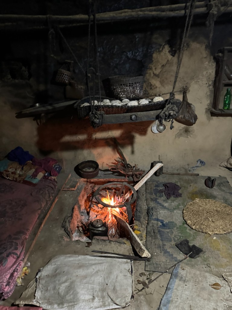 På veien hjem ble vi invitert på te og nudler til familien til Yek. Det var nærmest et blekkskur. Åpent, trekkfullt og med «kjøkken» og «stue» på kanskje 5 kvm. Vi tror vi telte kanskje 4 ingredienser på det såkalte kjøkkenet. Det var et åpent bål midt i rommet og en røykos som vi sjeldent har opplevd. Men de lo og pratet og bød på det de hadde. På veien tilbake til sovestedet møtte vi mange barn med sjokolade rundt munn og med hårpynt i alle regnbuens farger som smilte og lo og ropte «NAMASTE!!!»… Det var helt magisk!