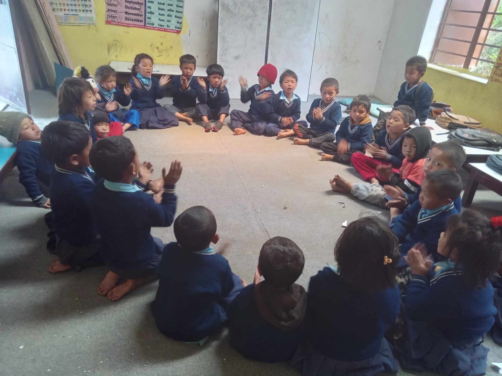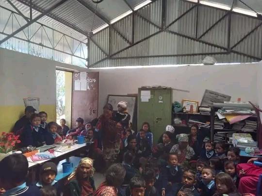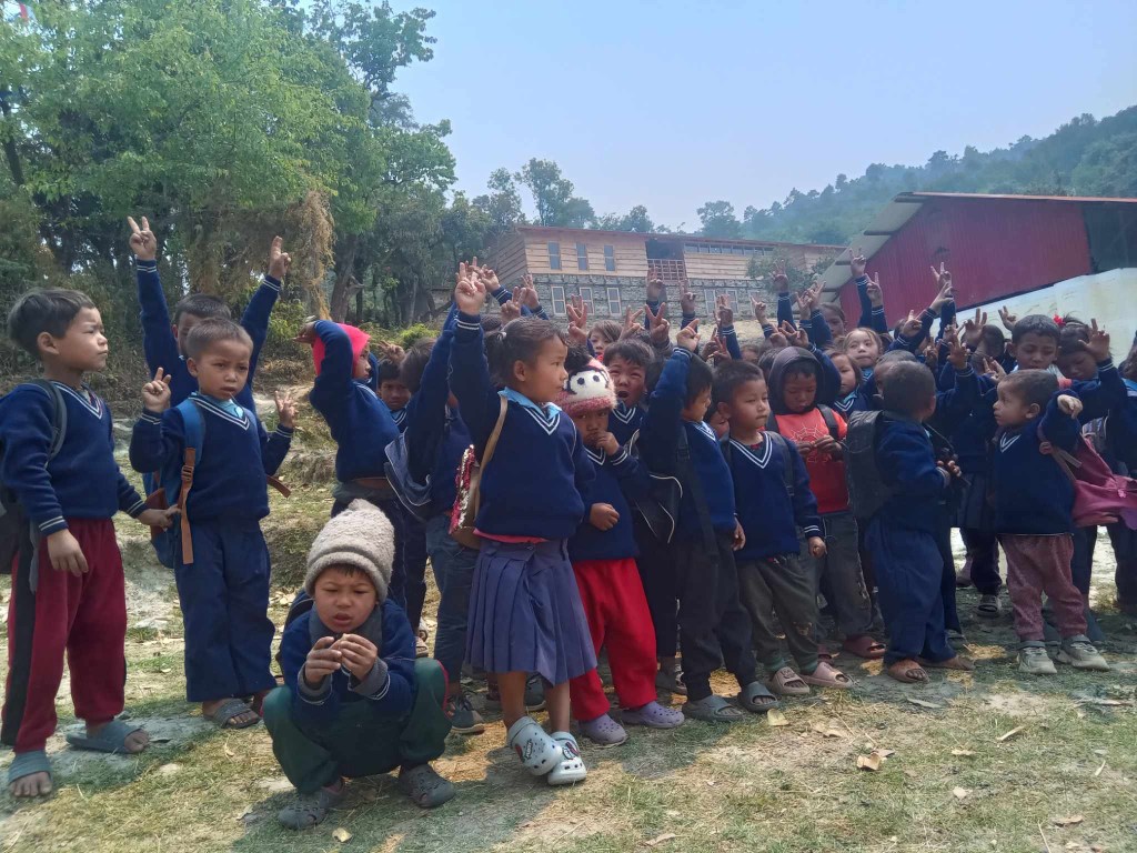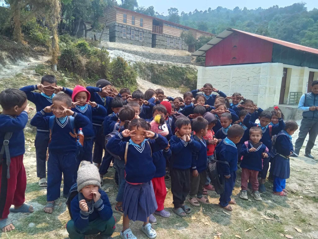 Da vi nesten var fremme ved skolen og kom rundt en sving og så skolen trodde vi ikke våre egne øyne! Hele landsbyen var samlet på skoleplassen. Det var blomster i alle farger og alle smilte. Alle med foldede hender og en «Namaste». Barna løp rundt og klarte ikke å stå stille. Vi følte vi kom som kongelige og hadde all oppmerksomhet rettet mot oss. Veldig merkelig, litt ubehagelig, men så utrolig fint at alle ville ta oss imot. En skikkelig velkomst som motbeviste alle våre skeptiske tanker.